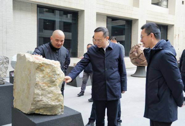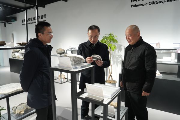谈文胜一行在中国地调局南京地质调查中心参观考察。