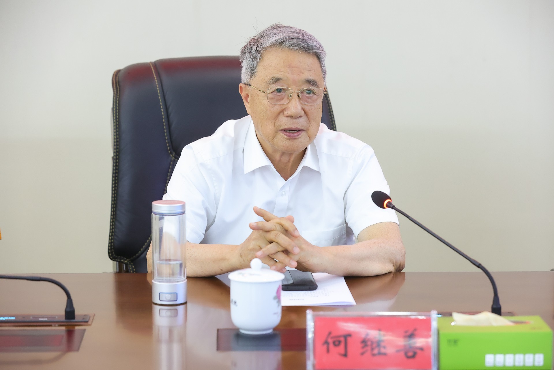 何继善院士指出,湖南省是鱼米之乡、有色金属之乡、能源之乡,湖南省地质院历史悠久、规模庞大、体系完整、成果丰硕,香港中文大学(深圳)城市地下空间及能源研究院在广域电磁法探测页岩气等方面有很多成功案例,此行与研究院专家前来是探讨页岩气、煤系气和中深层地热资源等选区与评价合作事宜。他结合国内相关领域现状和技术水平,从专业角度分析了牛蹄塘组页岩气地质资源量规模,指出湖南省页岩气、煤系气和地热能源规模量大、质量好,对湖南省来说是一个很好的能源来源。他提出目前在湖南开发页岩气、煤系气和地热能源的可行性,呼吁湖南地质人发扬敢为人先精神,为湖南省在能源勘探开发利用方面实现突破贡献地质智慧和地质方案。