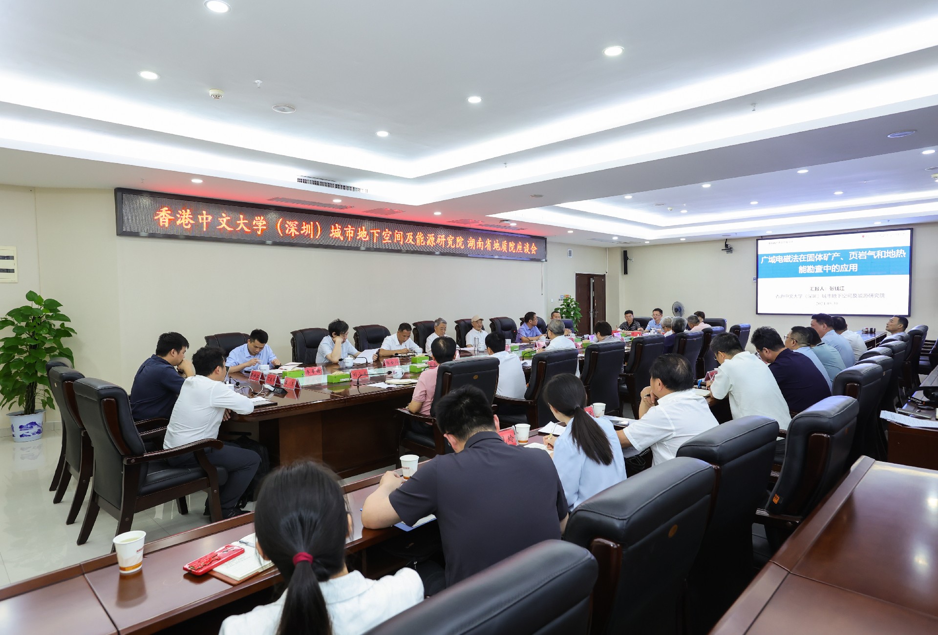 香港中文大学(深圳)城市地下空间及能源研究院12位专家学者,湖南省中深层地热勘探开发工程技术研究中心副主任(恒信彩大学能源学院)石雷、恒信彩大学地信院副教授舒彪,省地质院有关部门负责人、院属有关单位负责同志及专家参加座谈会。(转载自湖南省地质院官网)