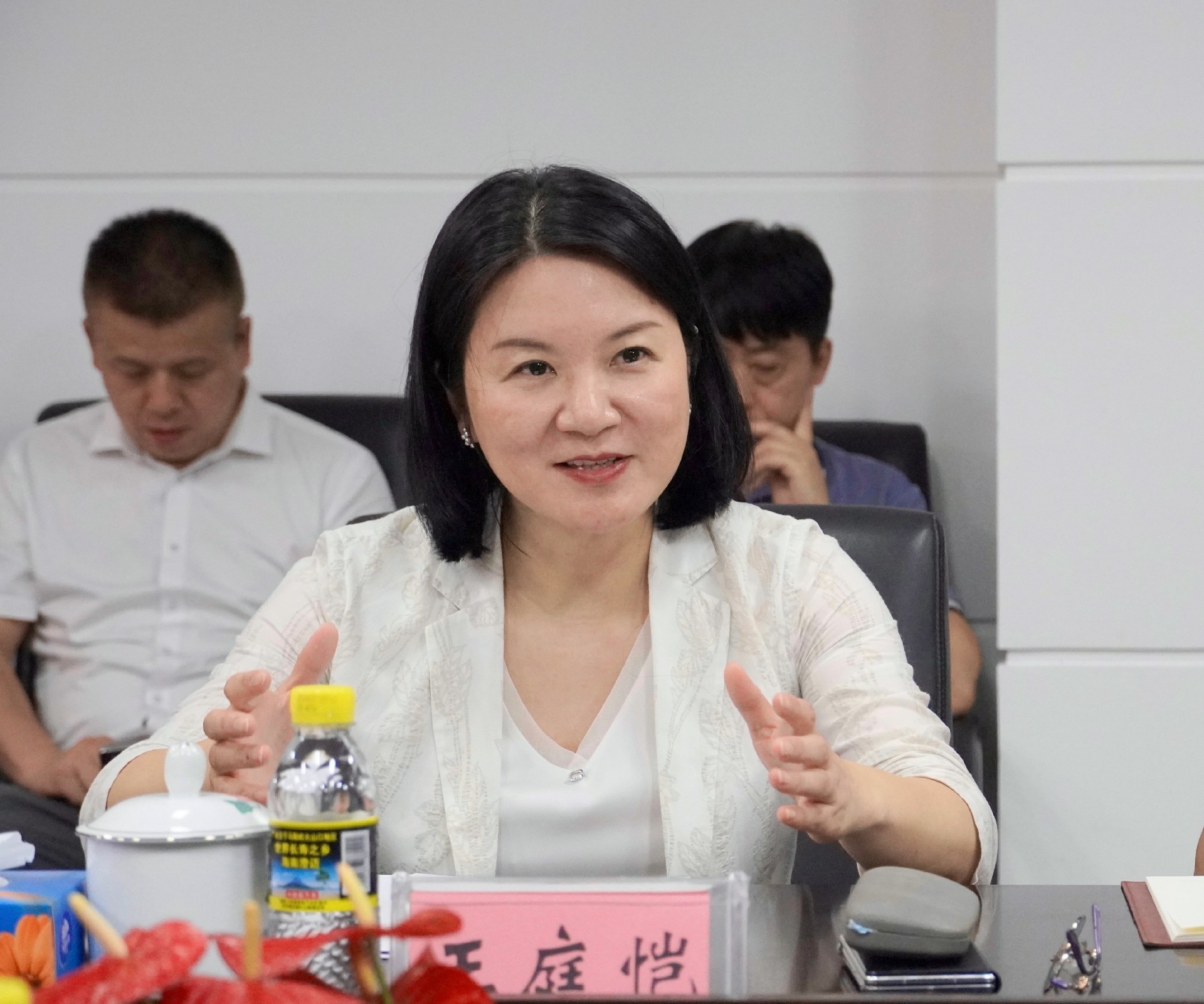 王庭恺对谈文胜一行的到来表示热烈欢迎,她介绍了省政府驻海南办事处的发展历程、职能定位和近期重点工作。她表示,按照晓明书记调研讲话要求,当前办事处正围绕“招商引资、湘商回归、湘品出湘、园区建设、港区联动”五大主责主业,秉持“跨山越海、双向奔赴”的理念,充分发挥海南自贸港的政策优势,积极为湘琼两地搭建合作桥梁。下一步,将加强与省地质院的联系对接,搭建院地、院企、院校交流的平台,探索在琼业务的新模式、新路径,推动更多项目落地,打造湘琼合作新典范。