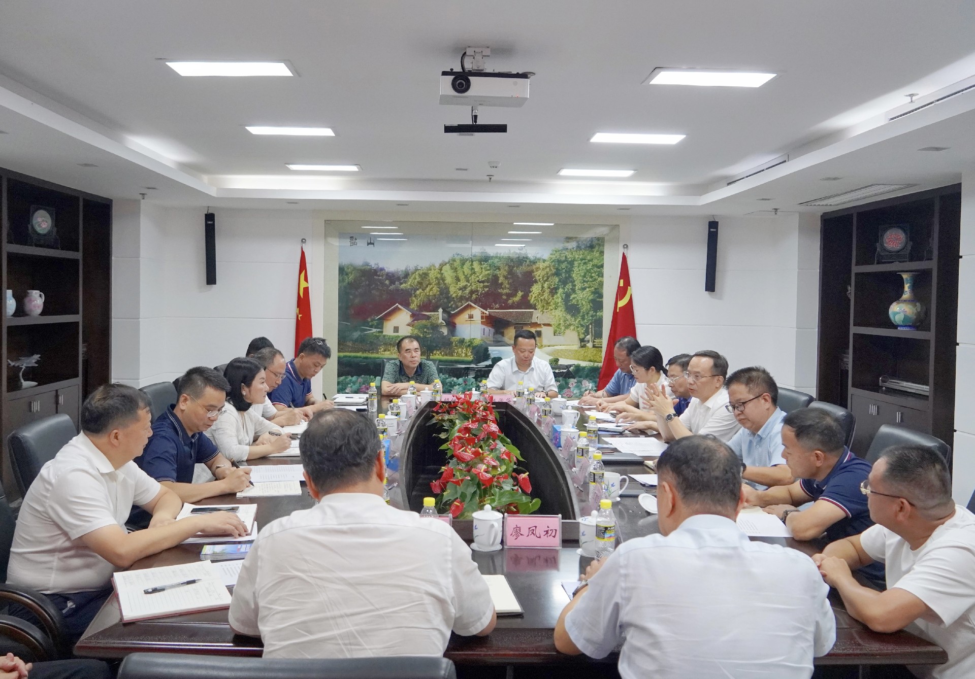 8月21日,省地质院党委书记谈文胜率队赴湖南省人民政府驻海南办事处,就贯彻落实省委书记沈晓明在湖南省党政代表团赴海南学习考察时的讲话精神,以及湘琼战略合作框架协议的有关内容进行会商交流。省政府驻海南办事处党组书记、主任王庭恺出席并主持座谈会,省政府驻海南办事处党组成员、副主任祝拥军、欧勇,省政府驻海南办事处二级巡视员张海新,省地质院党委委员、副院长全铁军参加。
